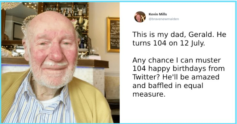 Gerald was certainly one of them and he was celebrated more than he could have ever imagined. It all started when his son, Kevin Mills, reached out to Twitter and announced that his father was turning 104 and asked if people could send him wishes.